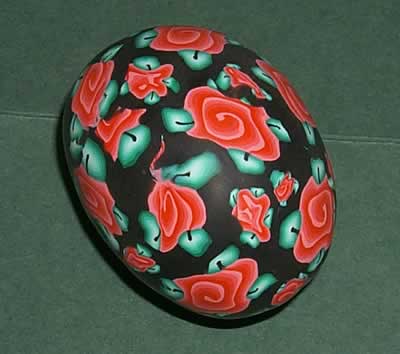 Made using a "rose" cane and a leaf cane. This was also my first attempt at a skinner blend.
